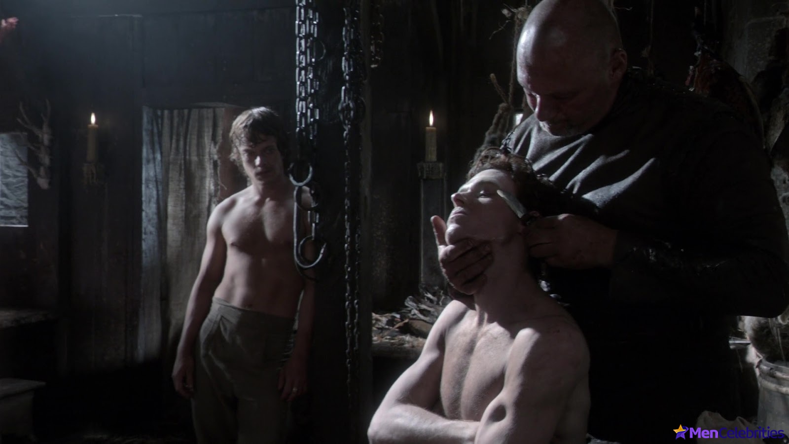 A very spicy moment awaits you in the TV series Sirens. Richard Madden will be locked in a closet where a man will find him. Since Richard’s hands were tied with a rope, the man will begin to untie them. And he will find himself very close to Richard’s nude penis.